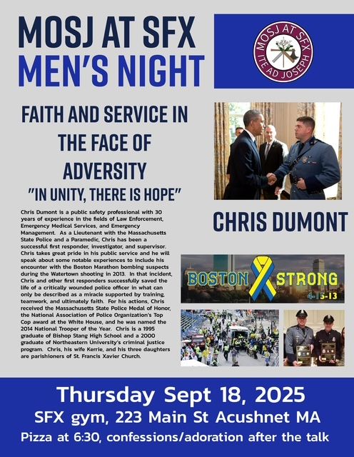 Thank you to our sacristans for making so many adjustments to the Mass setup in such a foreign environment, and to our collectors for figuring out how to handle the collections in the gym space.